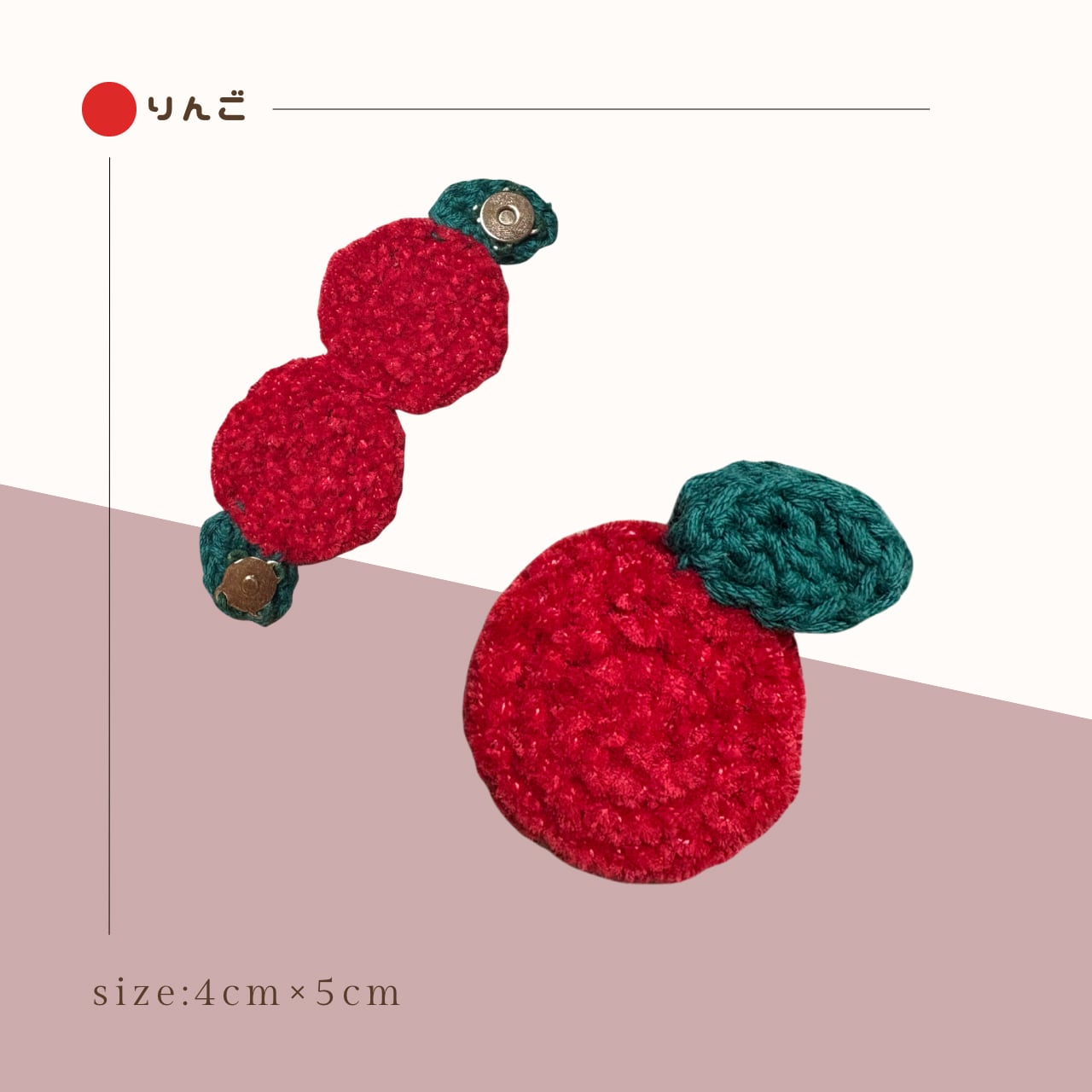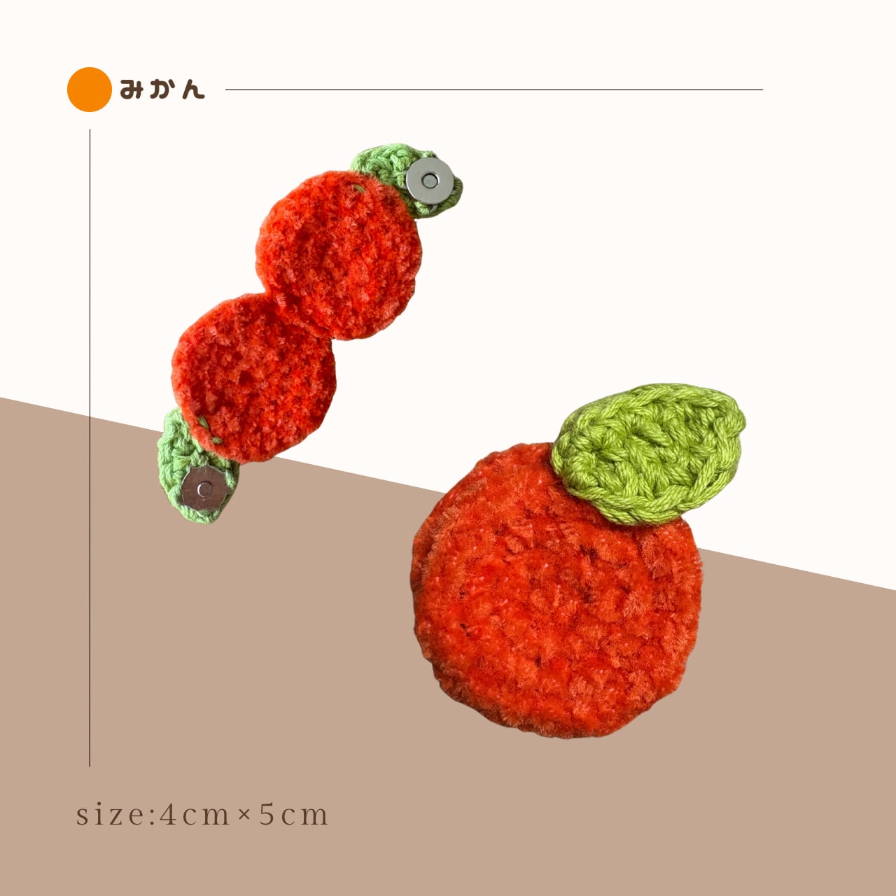 りんごとみかんの愛らしいデザインのマグネットタグは、お出かけのおともにぴったりです。